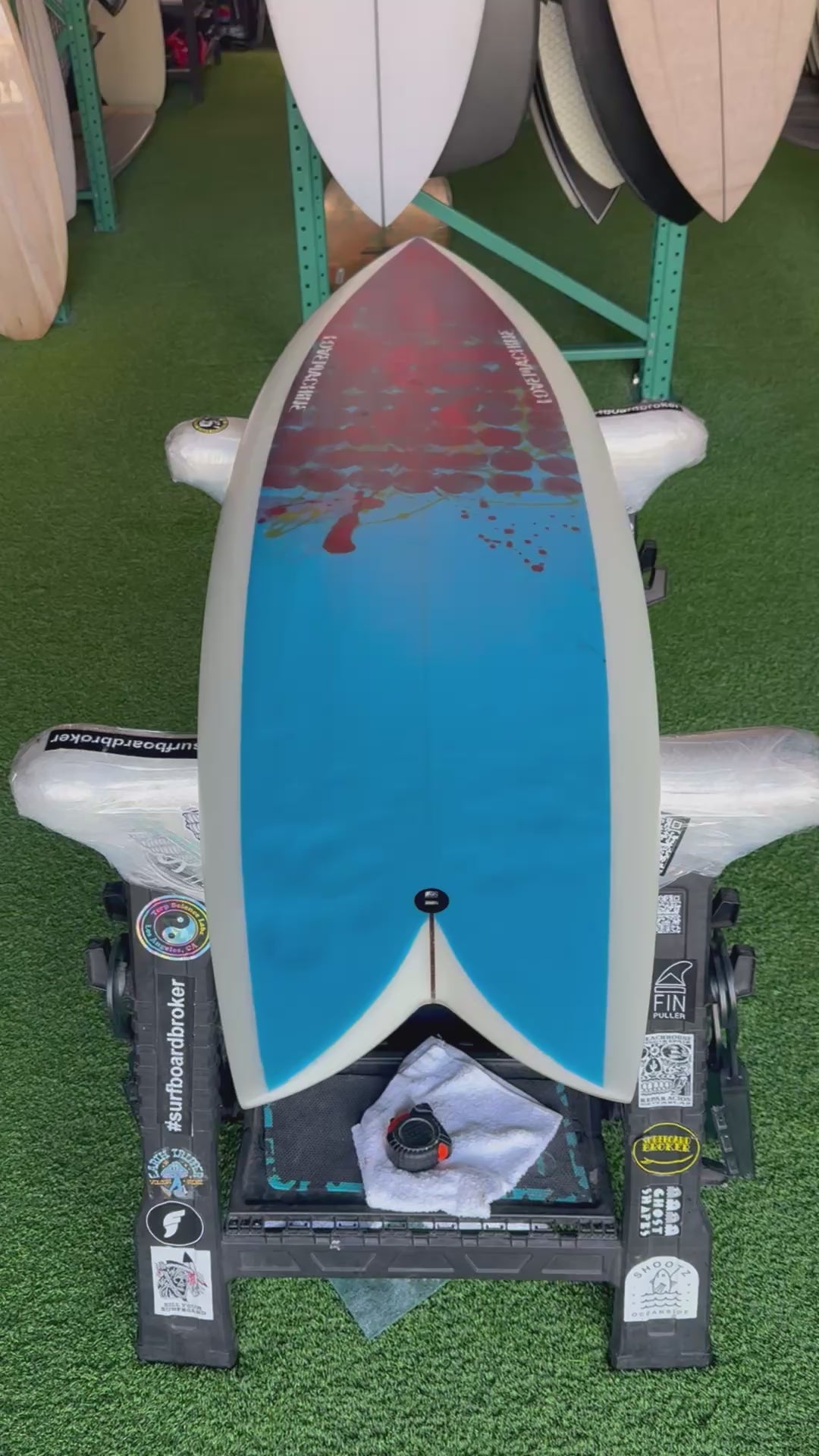 This board is in used condition (like new)—please see video for full details on condition and finish. An excellent opportunity to grab a near-new twin fin fish at a great value.