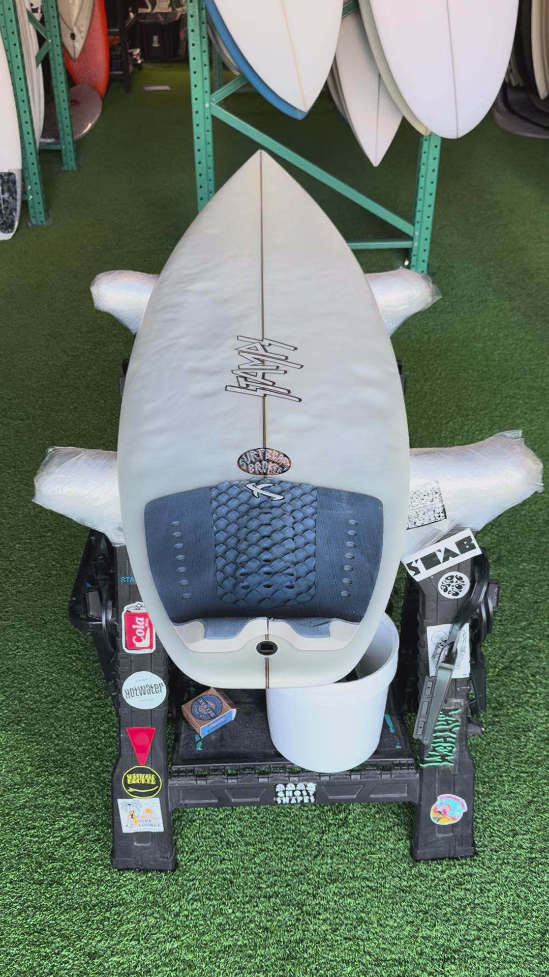 This board is in used condition — watch the video for a complete look at its shape and features. Ideal for surfers seeking a pro-inspired, performance-focused shortboard.
